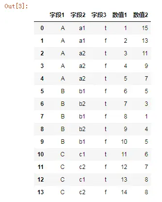 pd.pivot_table(data,values =['数值1','数值2'],index=['字段1','字段2','字段3'],aggfunc='sum')